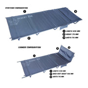 At last a comfortable lightweight camping bed stretcher that also converts to a lounger.