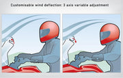 An easy to fit motorcycle windscreen deflector that reduces wind noise, turbulence and buffeting.