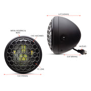 Max-Inc 7.7" Matte Black + Contrast Multi Projector LED Headlight + Honeycomb Grill Cover
