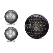 7.7" Matte Black + Contrast Multi Projector LED Headlight + Honeycomb Grill Cover