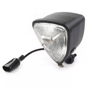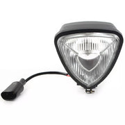 A cool looking vintage triangle headlight for that custom build. Come complete with a halogen bulb and H4 plug.
