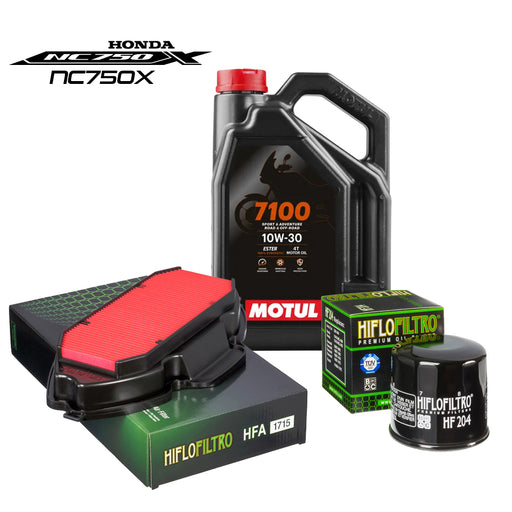 View full detailsService Kit for Honda NC750X models Description:Motul Oil, HiFlo Air Filter & HiFlo Oil Filter. - 7100-10W30- HFA1715 Air Filter- HF204 Oil Fil...
