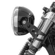 These Headlight Brackets are available in either black or chrome. The Fork Clamps can be mounted onto the forks without having to drop the forks down from the triple tree (yoke).