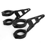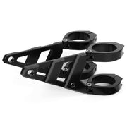 These High Quality Headlight Brackets are made from CNC Machined T6061 Billet Aluminium and have adjustable arms which allow for different width headlights. The Fork Clamps are 2 separate pieces so they can be mounted onto the forks without having to drop the forks down from the triple tree (yoke).