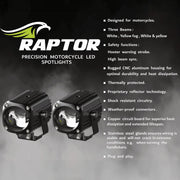 The new Raptors now have an intelligent digital control box that produce 3 different beam colours, to suit varying riding conditions: