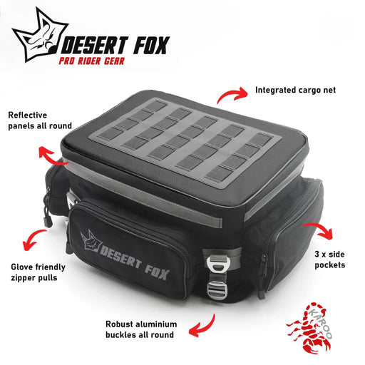 Desert Fox Karoo Tail Bag An ultra light Ballistics nylon tail bag that will not place strain on your luggage rack. Ideal for weekend & daily...