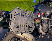 The TurkanaGear adventure touring motorbike soft luggage pannier frame hard-plates is a quick release, easy on/off mounting system, allowing for hassle free easy fit and removal of your HippoHips™ saddlebags.