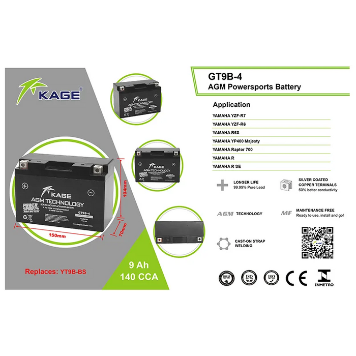 Kage Sealed Battery GT9B-4 Maintenance Free Series